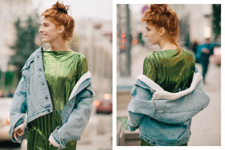 H&M プレミアム メタリックグリーン プリーツ Midi ドレス