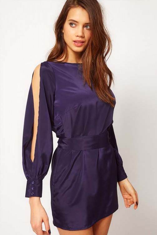 Satin long-sleeve racerback mini dress