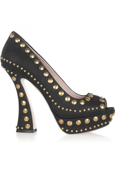 MIU MIU Studded textured-leather pumps