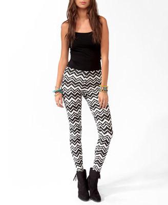 フォーエバー21 シェブロンストライプレギンス