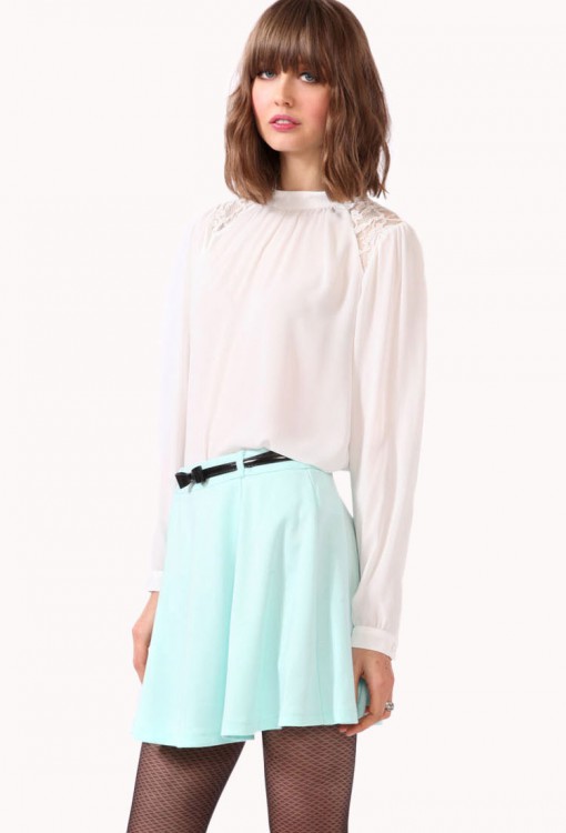 Forever 21 white long sleeved high neck lace panels back bow blouse