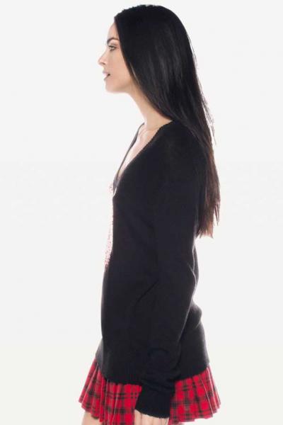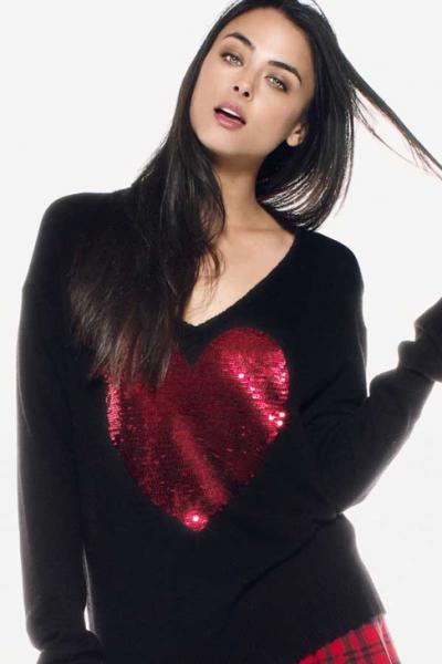 Wildfox Couture Sequin Red Heart V-Neck Sweater in Black