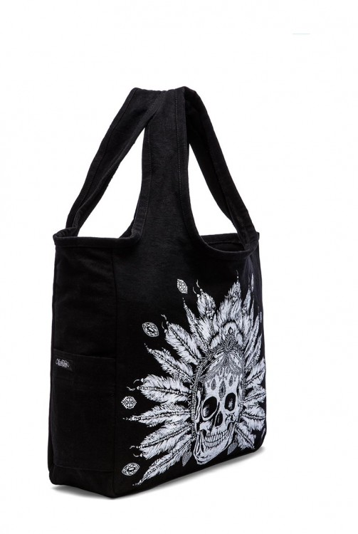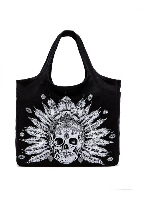 LAUREN MOSHI taylor feather chain skull canvas tote bag