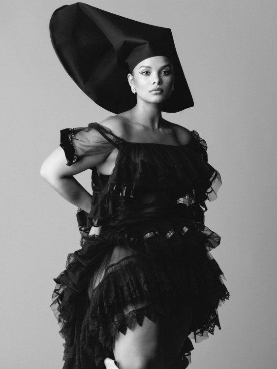 Harper's Bazaar Brazil Nasta capa, a modelo Leslie Sidora usa regata sapatos PRADA