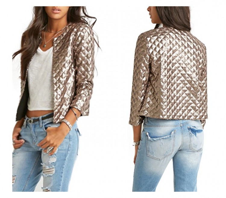 [NWOT] Lozenge Women Gold Sequins Jackets Three quater sleeve