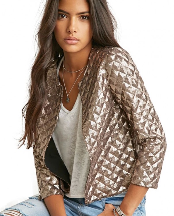 [NWOT] Lozenge Women Gold Sequins Jackets Three quater sleeve