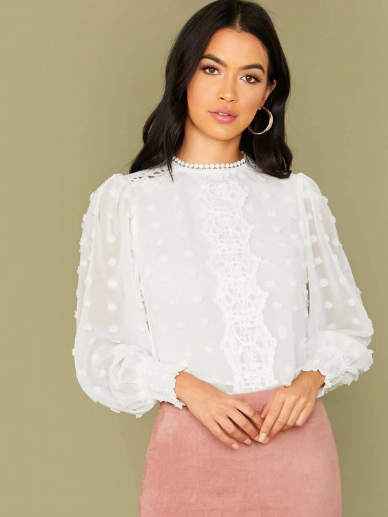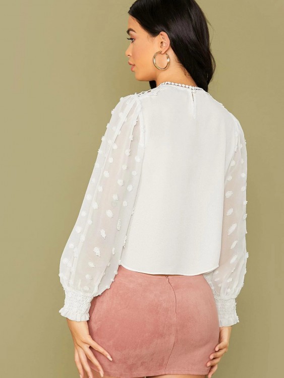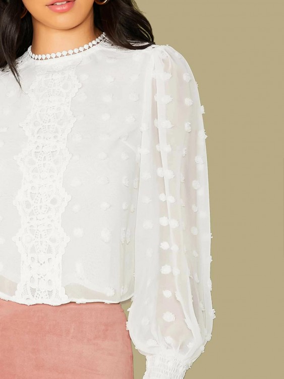 ランタンスリーブ アイレット 刺繍ブラウス