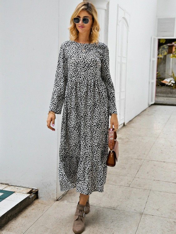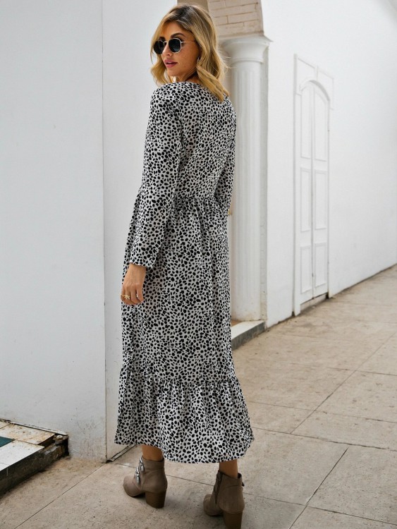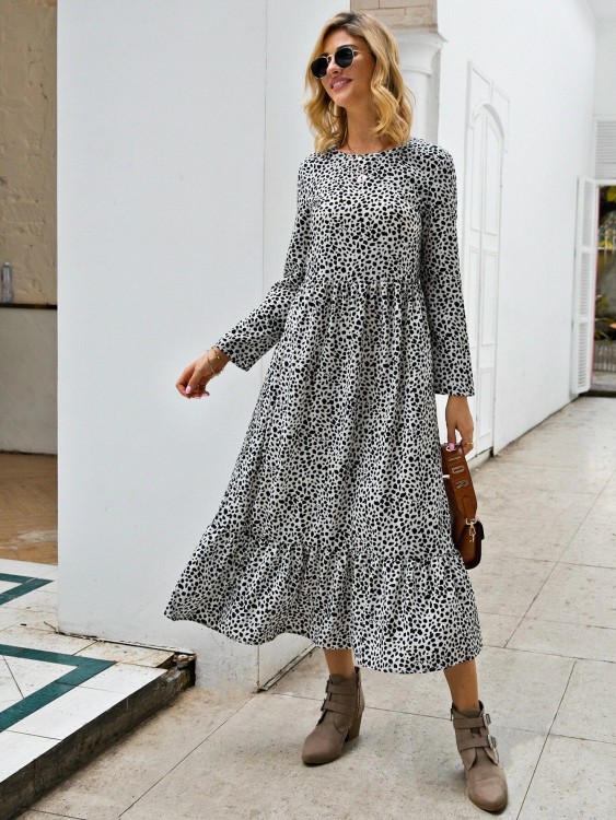 ダルメシアン プリント フリル裾 スモックドレス