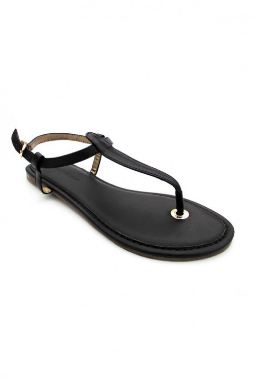 [NWOT] Tストラップ レザーフラットサンダル black