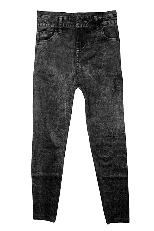 [NWOT] Washed Denim Printed Black Leggings