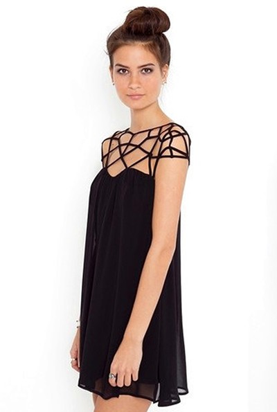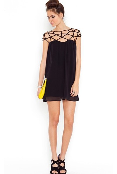 [NWOT] スリーブレスライトシースルーホローアウトシルクミニドレス