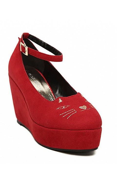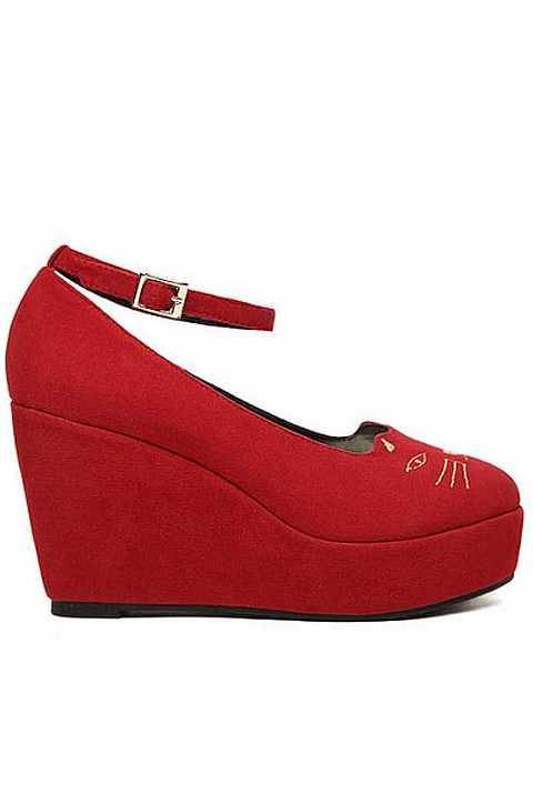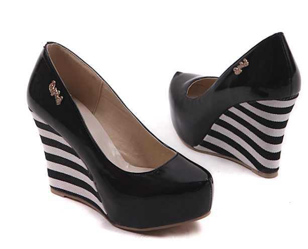 [NWOT] パテントレザー ストライプ柄ウェッジ プラットフォームパンプス ブラック