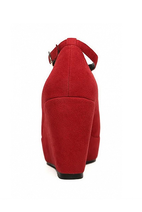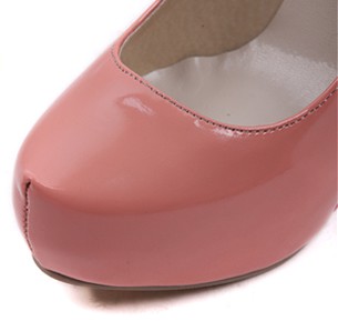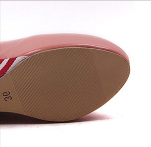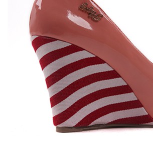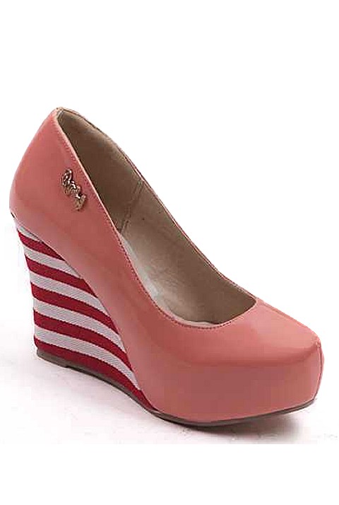 [NWOT] パテントレザー ストライプ柄ウェッジ プラットフォームパンプス ピンク