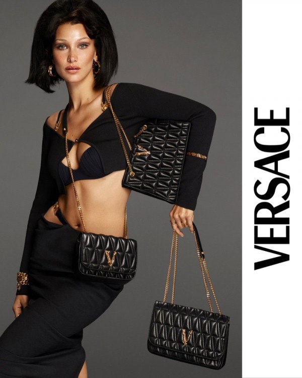 Bella Hadid per la campagna di borse Versace Virtus 2021