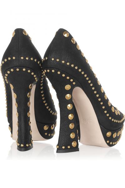 MIU MIU Studded textured-leather pumps