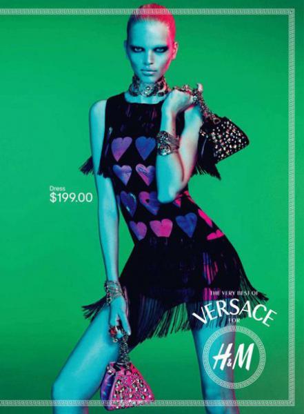 VERSACE for H&M black heart print fringe silk dress